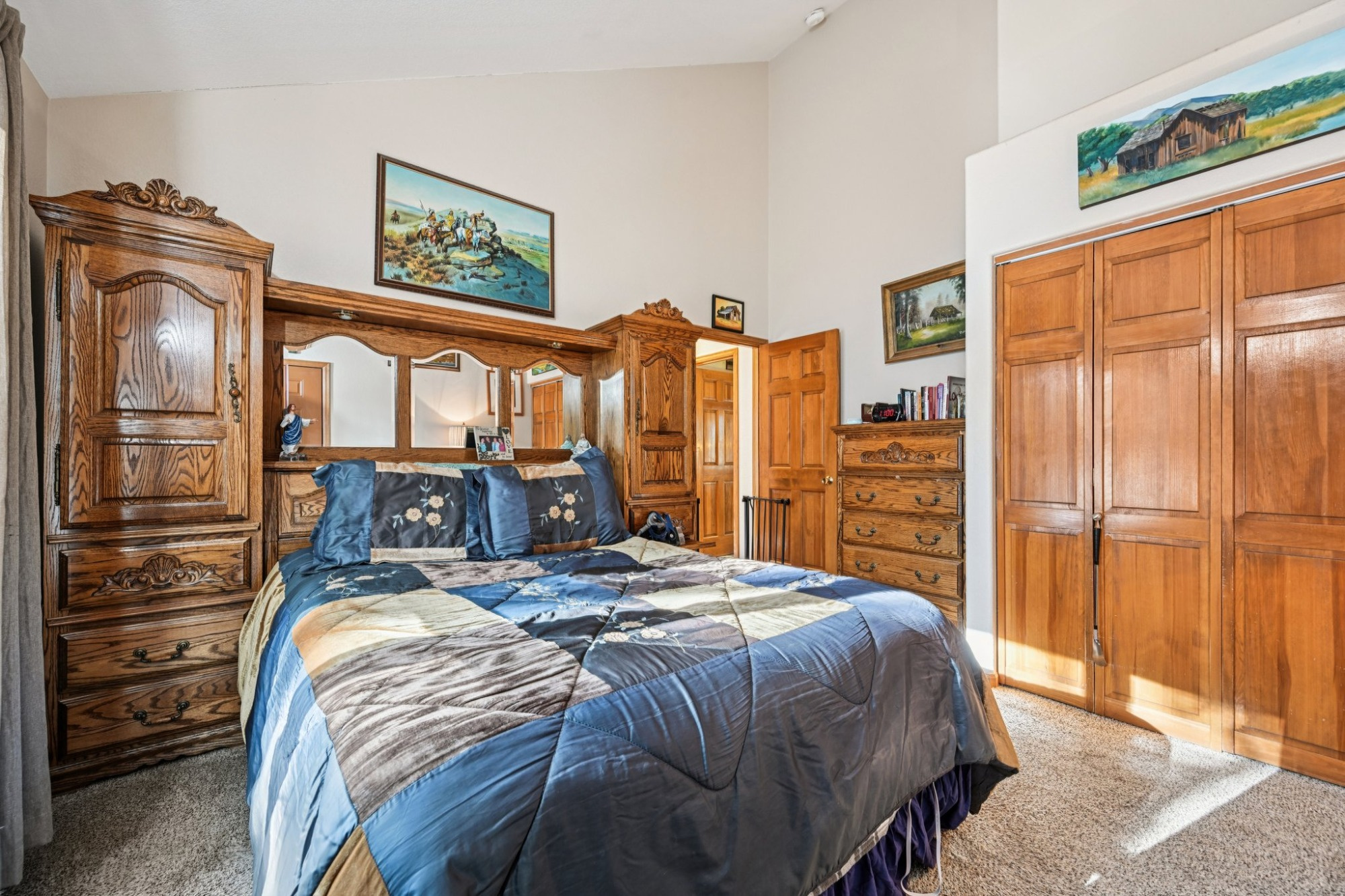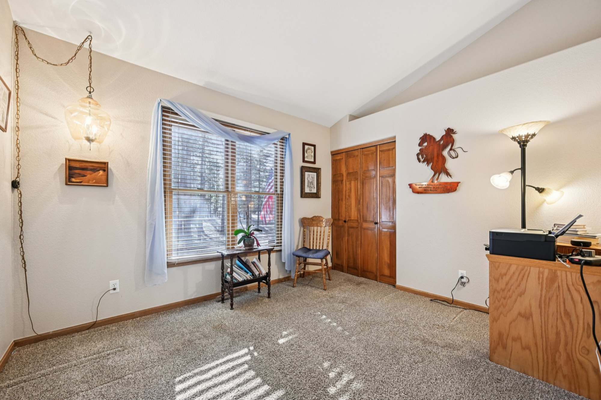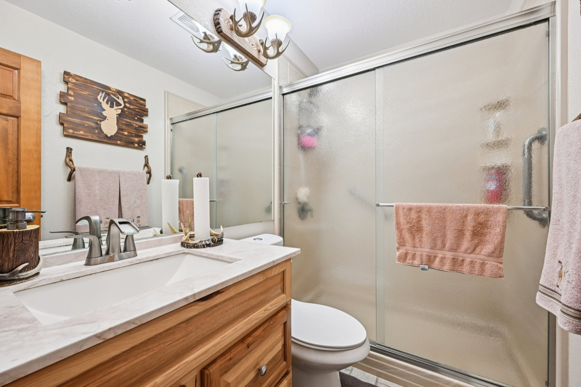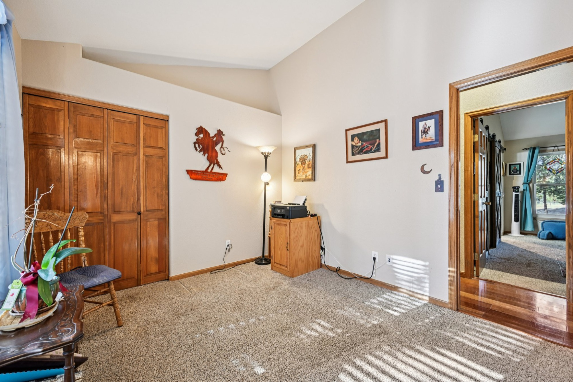 The primary suite has tranquil views, a walk-in closet, and slider barn doors that lead to a private 5-piece en suite bath with a soaking tub. There are 2 additional main level bedrooms, a 3/4 bath, powder room and a laundry room.