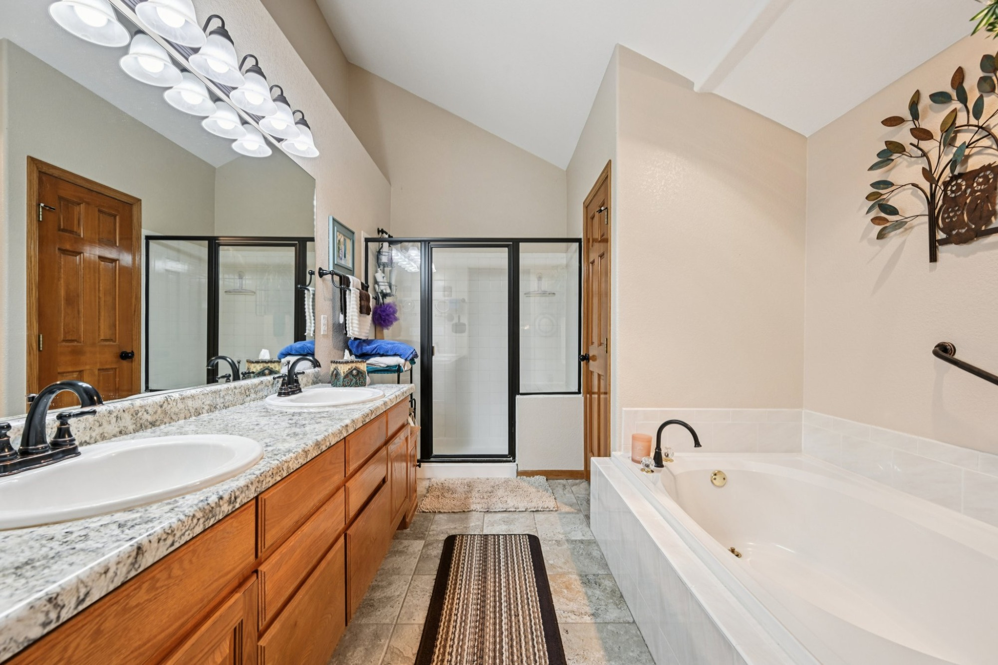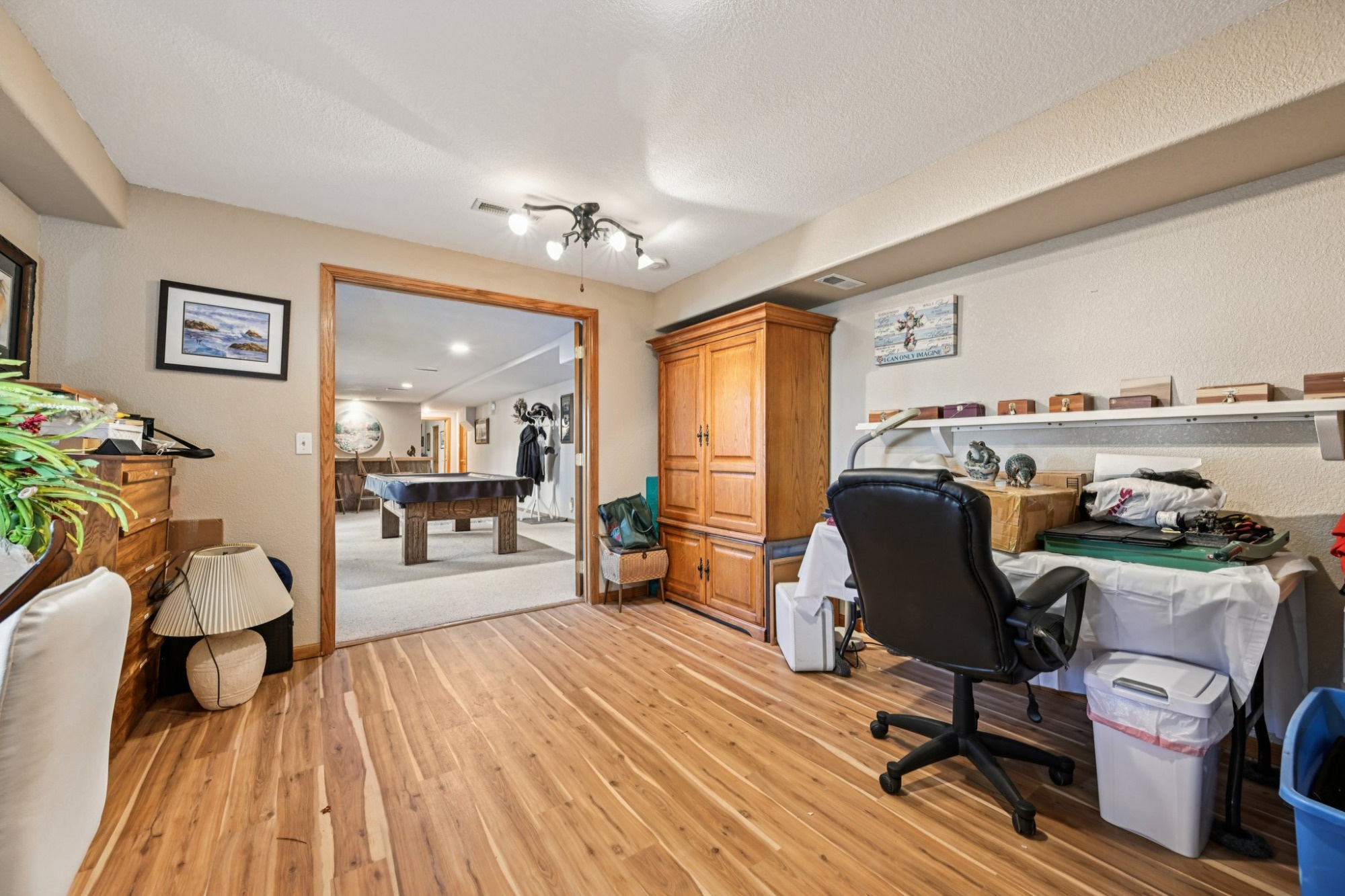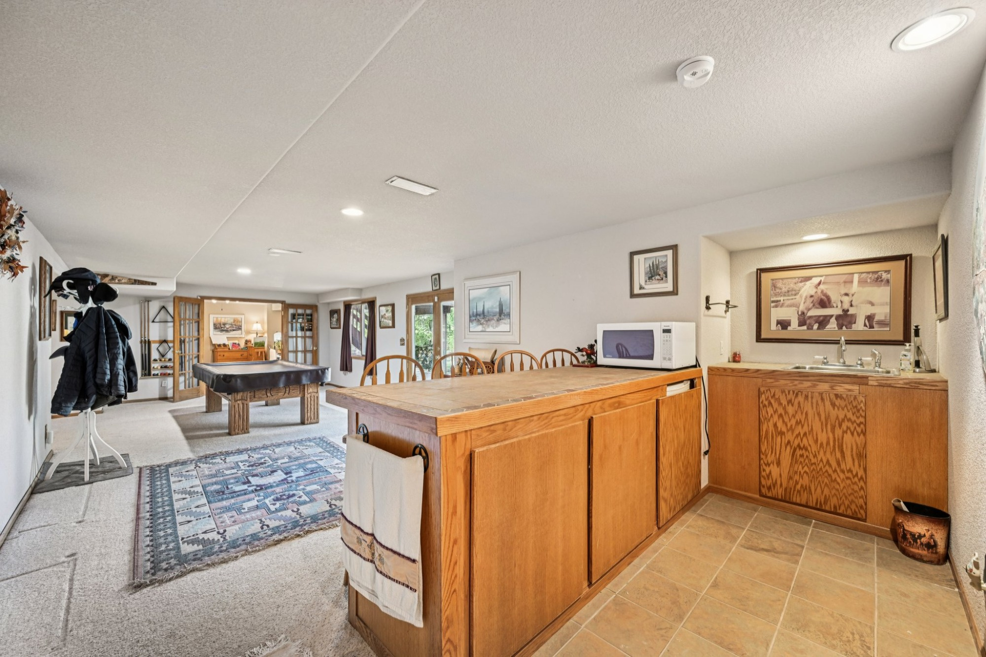 Downstairs, the fully finished walk-out basement expands the living space with a huge sunlit rec/family room boasting a wet bar and glass sliders that open to the flagstone patio. Adjacent is a bonus room. These living areas are ideal for movie nights, game days, or casual entertaining. Basement includes a spacious office with French doors, a large bedroom, a full bathroom and a huge storage area.
